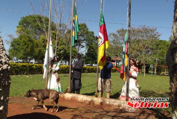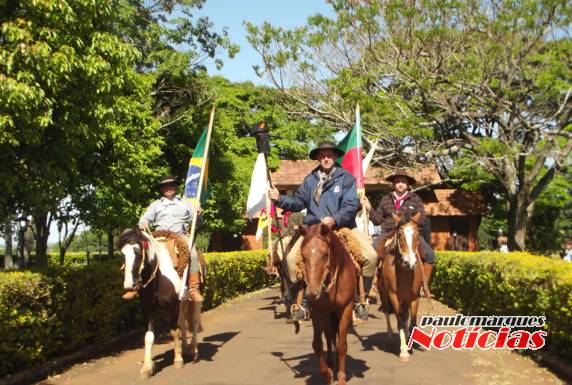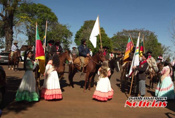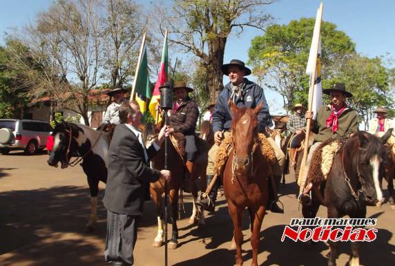 desfilaram pelo centro da cidade em direção ao CTG. No Tropeiros do Buricá, o patrão Francisco de Gaspari recebeu a Chama Crioula das mãos do