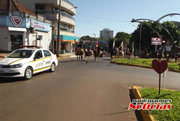 O grupo de cavalarianos que foi a Crissiumal para buscar a chama, chegou em Três de Maio por volta das 9he45min quando
