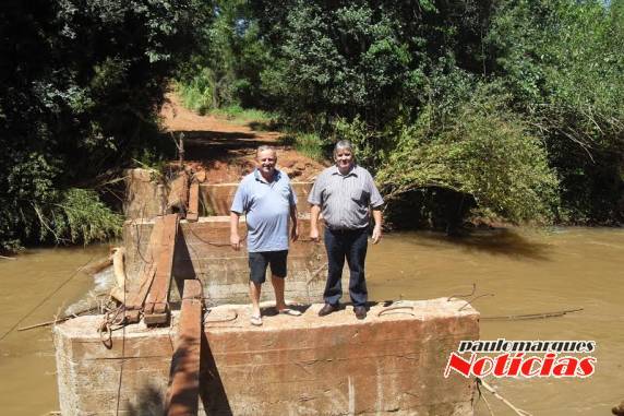 com os vereadores Henrique Szareski (Presidente da Câmara de Vereadores, pelo PTB) e Joailson Roberto Redel (PTB), foram vistoriar a ponte na comunidade de São Francisco,