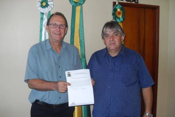 manhã desta quinta-feira (28), o Prefeito em Exercício Saldanha Boiarski Borges passou o comando do Município ao titular do cargo Prefeito Gilberto Marasca.