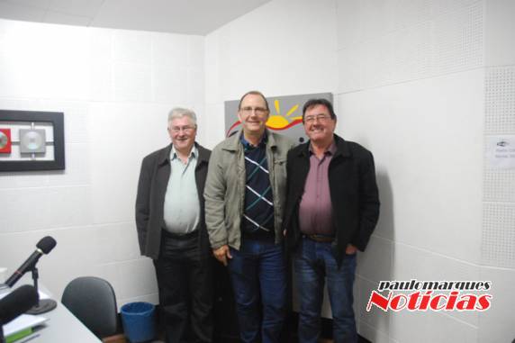 primeiro debate da corrida eleitoral na manhã deste sábado (3) na Rádio Colonial. Beto Marasca (PMDB), João Edécio Graef (PTB) e Rudy Cornélius