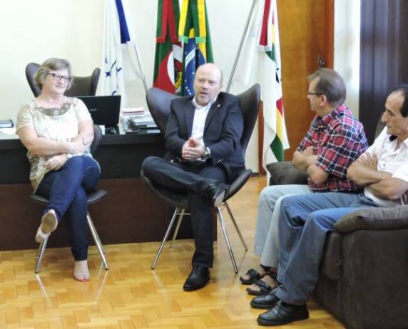 após encontro com a prefeita em exercício Eliane Fischer, o vereador Nalci Recalcatti e lideranças do PDT e do PT no gabinete. O deputado disse que a vinda a Três