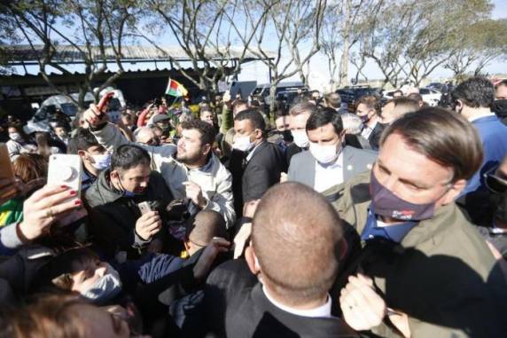 Na saída, Bolsonaro provocou nova aglomeração ao descer mais uma vez do carro para cumprimentar populares. O frentista Marlon Freitas, 28 anos, foi um dos que correu para apertar a mão do presidente.