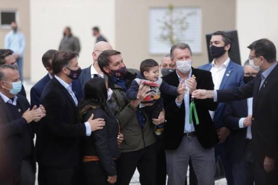 Após o almoço, a cena se repetiu diante dos prédios do Minha Casa, Minha Vida. O presidente parou a comitiva para montar a cavalo. Bolsonaro desceu do carro, subiu no animal da raça crioula de um cavalariano que o esperava e agitou a bandeira rio-grandense. Dentro do residencial, a cerimônia foi curta. O presidente conheceu um dos apartamentos e entregou as chaves para quatro famílias contempladas antes de conversar com os jornalistas. Nos cinco minutos de entrevista, falou sobre investimentos em Bagé, covid e cloroquina antes de encerrar abruptamente e conversa diante de uma pergunta sobre a recriação da CPMF.