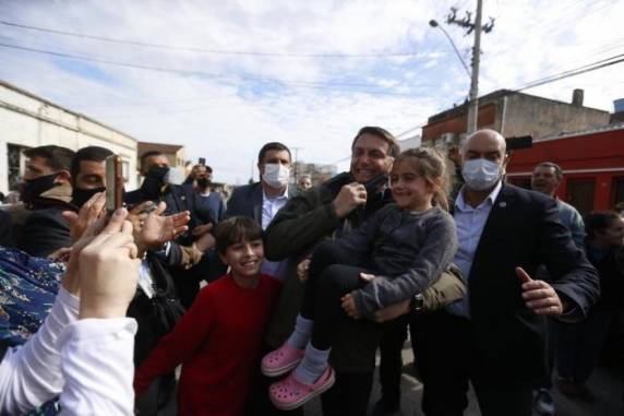 Seis dias após receber o diagnóstico de que não está mais contaminado pelo novo coronavírus, o presidente Jair Bolsonaro provocou aglomerações em visita ao Estado nesta sexta-feira (1). Bolsonaro esteve por cerca de cinco horas em Bagé, na Campanha, onde inaugurou unidades do Minha Casa Minha Vida e uma escola cívico-militar. Nos deslocamentos, ele chegou a parar o comboio e desceu do carro para cumprimentar simpatizantes. Após a entrega das chaves a famílias contempladas com as residências populares, Bolsonaro concedeu uma rápida entrevista na qual disse estar curado da covid-19 e que "todo mundo vai pegar".