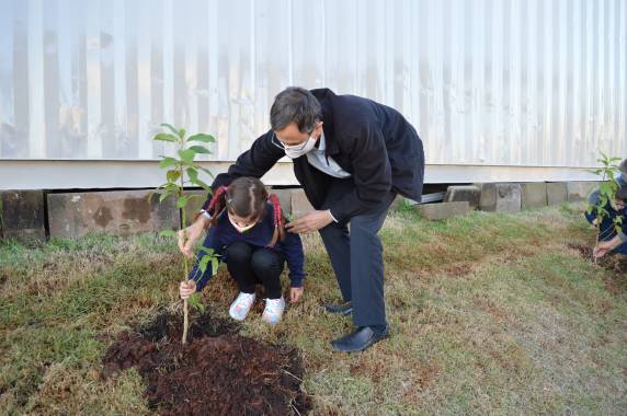 A ação contou com a presença do prefeito Anderson Mantei e do presidente Rubens Zamberlan, além da diretora-geral Vanderli de Barros e de lideranças da Instituição. O plantio das árvores simbolizou também a importância do cuidado e da manutenção progressiva para que o plantio gere frutos, em uma alusão à trajetória da Instituição até chegar ao nível máximo de certificação no Brasil. O momento especial contou com a participação de três crianças: Lucas, Luana e Manu, filhos de funcionários da Instituição, simbolizando a Família Vida & Saúde!