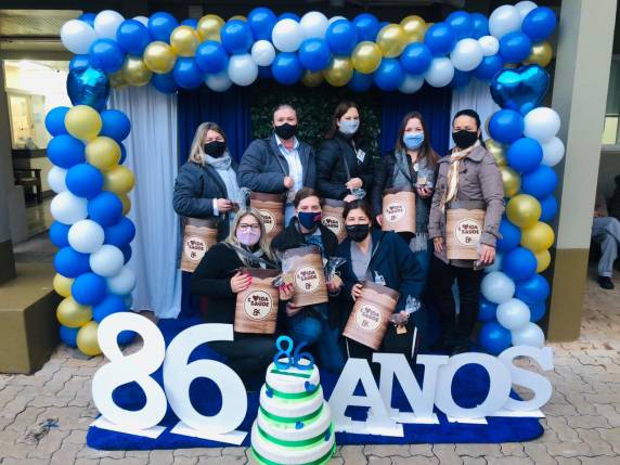 Os funcionários do Hospital Vida & Saúde iniciaram a semana de forma especial. Ao longo de toda segunda-feira (28), os mais de 1.100 colaboradores receberam mateiras alusivas aos 86 anos do HVS, acompanhado de um delicioso pão de mel oferecido pelo Sicredi e por chocolate quente preparado pelo Serviço de Nutrição do Hospital.