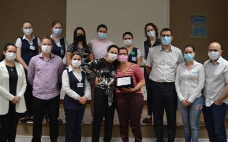 Para marcar a data e agradecer por todo trabalho desenvolvido, o HVS preparou um momento de homenagem para Magali Rigo, proprietária da Clínica e que deu início ao trabalho da empresa no Hospital. Entregue pela diretora-geral Vanderli de Barros, com a presença de diretores e de supervisores das Unidades, uma placa de homenagem fez referência ao “carinho, dedicação e trabalho comprometido” com a Instituição.