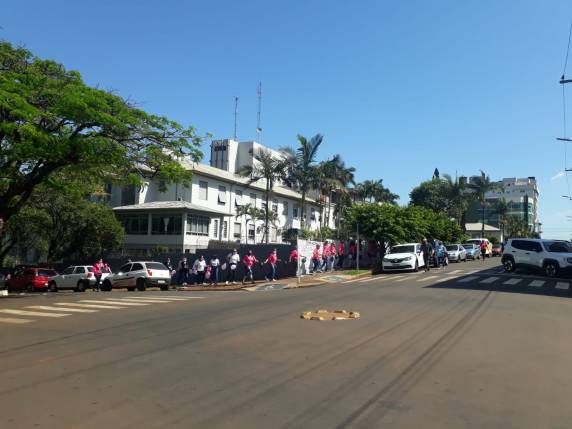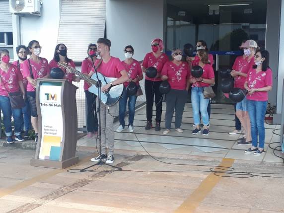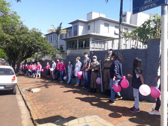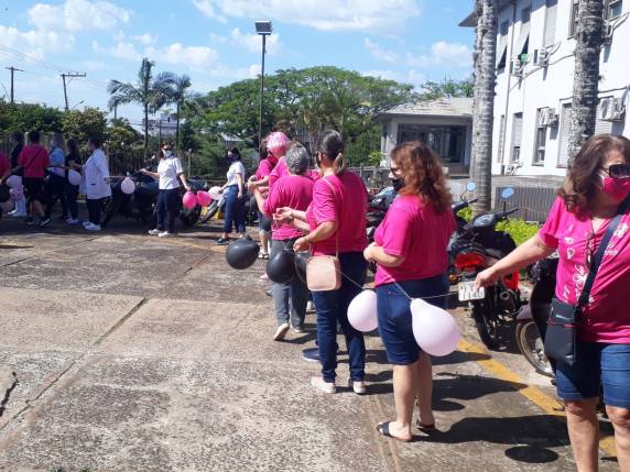 Para marcar o encerramento da programação do Outubro Rosa em Três de Maio, as vitoriosas do IMAMA promoveram um abraço simbólico ao Hospital São Vicente de Paulo.