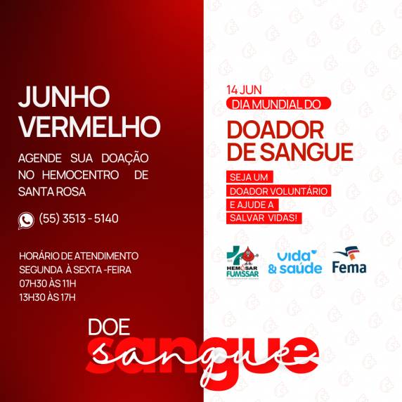As doações de sangue devem ser feitas diretamente no Hemocentro de Santa Rosa. A doação pode ser realizada mediante agendamento pelo WhatsApp (55) 3513-5140. O atendimento é de segunda a sexta-feira, das 07h30 às 11h e das 13h30 às 17h.