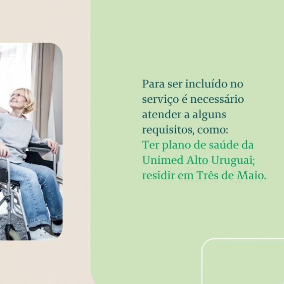 Para ser incluído no serviço é necessário atender a alguns requisitos, como: ter plano de saúde da Unimed Alto Uruguai; residir em Três de Maio.
