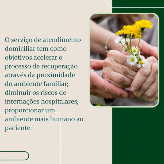 O serviço de atendimento domiciliar tem como objetivos acelerar o processo de recuperação através da proximidade do ambiente familiar; diminuir os riscos de internações hospitalares; proporcionar um ambiente mais humano ao paciente; reintegrar o paciente à vida normal; integrar médico-família-paciente, proporcionando melhores condições ao doente.