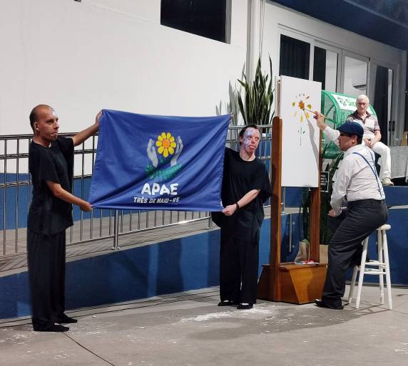 Após, os alunos Magnus André da Silva, Leonardo Schossler e Vinicius Zdruikoski realizaram uma apresentação artística, e o aluno Gilberto Schuander leu um texto de sua autoria em que parabeniza a Apae pelo aniversário.