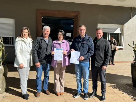 O Hospital Vida & Saúde recebeu, nesta semana, a indicação de recursos de Custeio MAC ao Orçamento Geral da União - OGU 2025, no valor de R$ 200 mil, pelo Senador Luis Carlos Heinze. A formalização da entrega do recurso foi realizada pelo vereador Vitor De Conti, com documento entregue ao presidente do Hospital, Sidnei Strejevitch, e à diretora-geral, Vanderli de Barros. O ato contou com a presença do diretor de infraestrutura, Rodrigo Calixto, e da assessora de projetos, Luciene Schröder.
